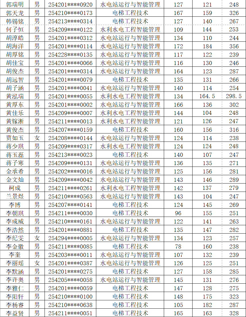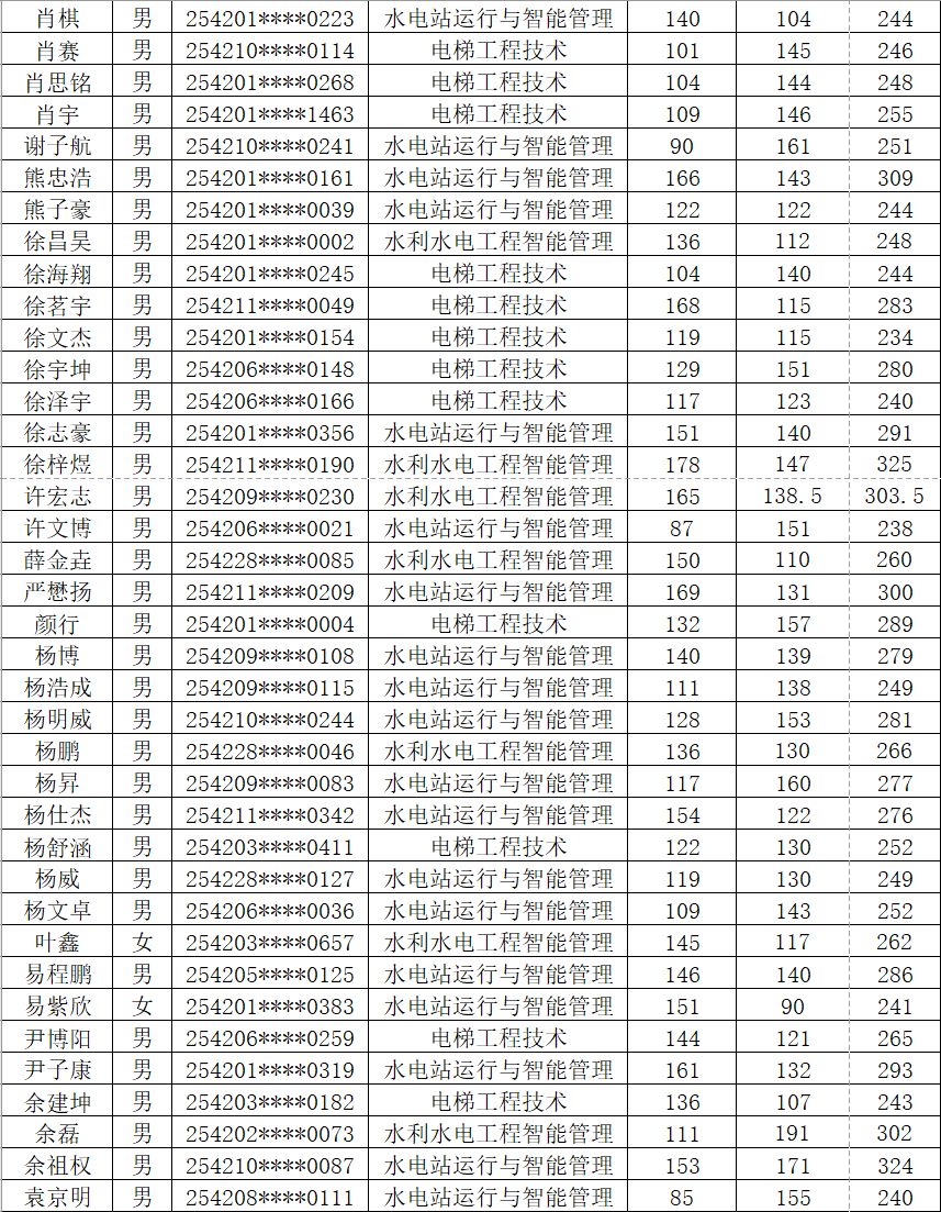根据《省教育厅关于做好2025年高职单独考试招生工作的通知》(鄂教职成函〔2025〕3号)文件精神。按照《湖北水利水电职业技术学院2025年高职单独招生章程》中公布的录取标准和录取办法,确定各专业拟录名单并予以公示(按照考生姓名排序)。公示期为4月7日-13日,公示期内如有疑问,及时与我校招毕办联系。经我校公示录取的考生,不得参加今年后续普通高校招生统一高考、技能高考以及其他考试和录取。最终录取结果以省招办审核通过的名单为准。咨询电话:027-87378093 监督电话:027-87378279。