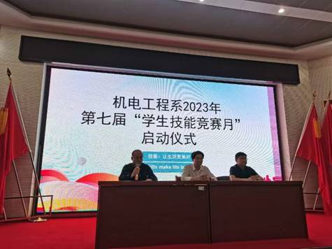 为深入贯彻落实党的二十大精神和习近平总书记关于职业教育的重要指示批示精神,弘扬劳动光荣、技能宝贵,创造伟大的时代风尚,营造人人皆可成才,人人尽展其才的良好环境。5月25日下午,机电工程系在南湖校区二楼报告厅举行第七届“学生技能竞赛月”活动启动仪式,系部相关负责人、全体教职工和各专业学生代表参加了启动仪式。