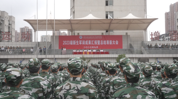 金秋九月,硕果盈枝。9月23日上午,我院2023级新生军训成果汇报暨总结表彰大会在两校区隆重举行。党委书记王玉才,党委副书记、院长姚祖军分别在南湖校区和汤逊湖校区出席大会并讲话。学院领导班子成员、各职能部门、各系部相关负责人、武汉警备区全体承训教官、学生教官、全体2023级新生及辅导员参加大会。