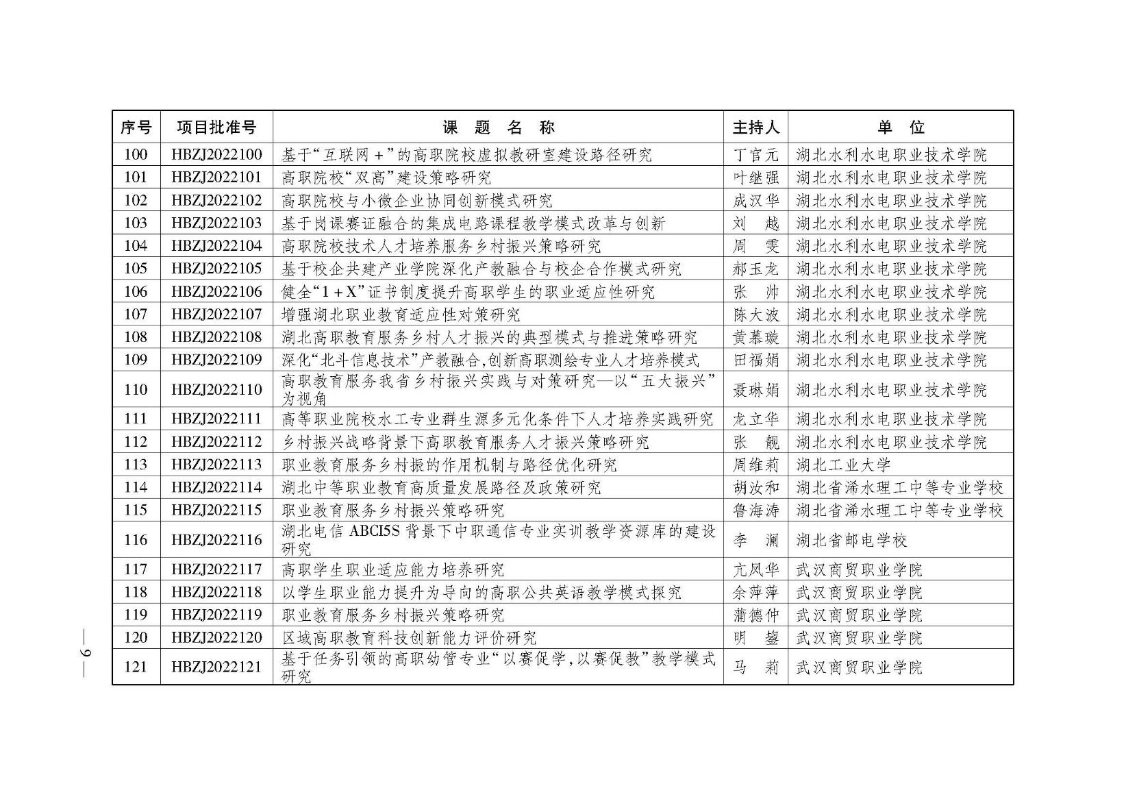 (冯伦)日前,从湖北省中华职业教育社《关于2022年度课题研究项目立项的通知》(鄂社字[2022]6号)获悉,我院申报的13项课题研究项目获批立项,名单如下: