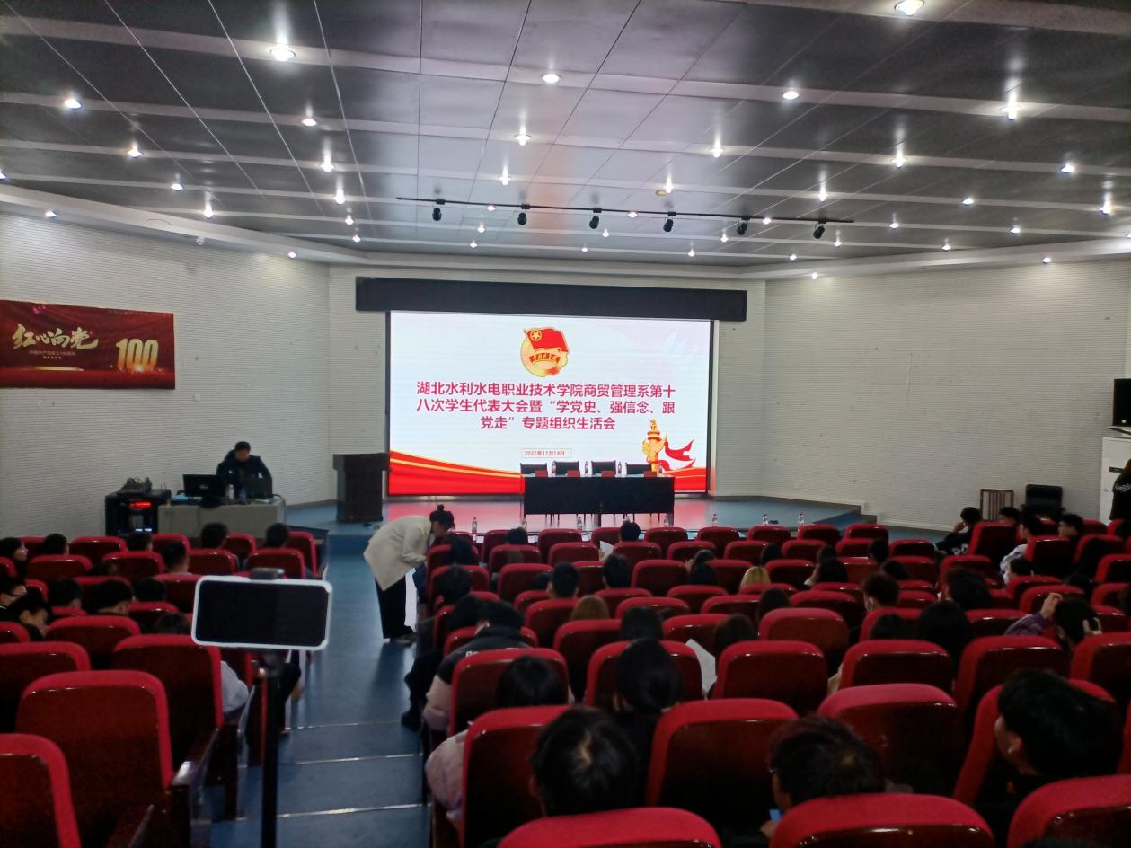 (欧阳文杰)根据学院要求,商贸系于11月14日在南湖校区成功举办第十八次学生代表大会暨“学党史、强信念、跟党走”专题组织生活会。