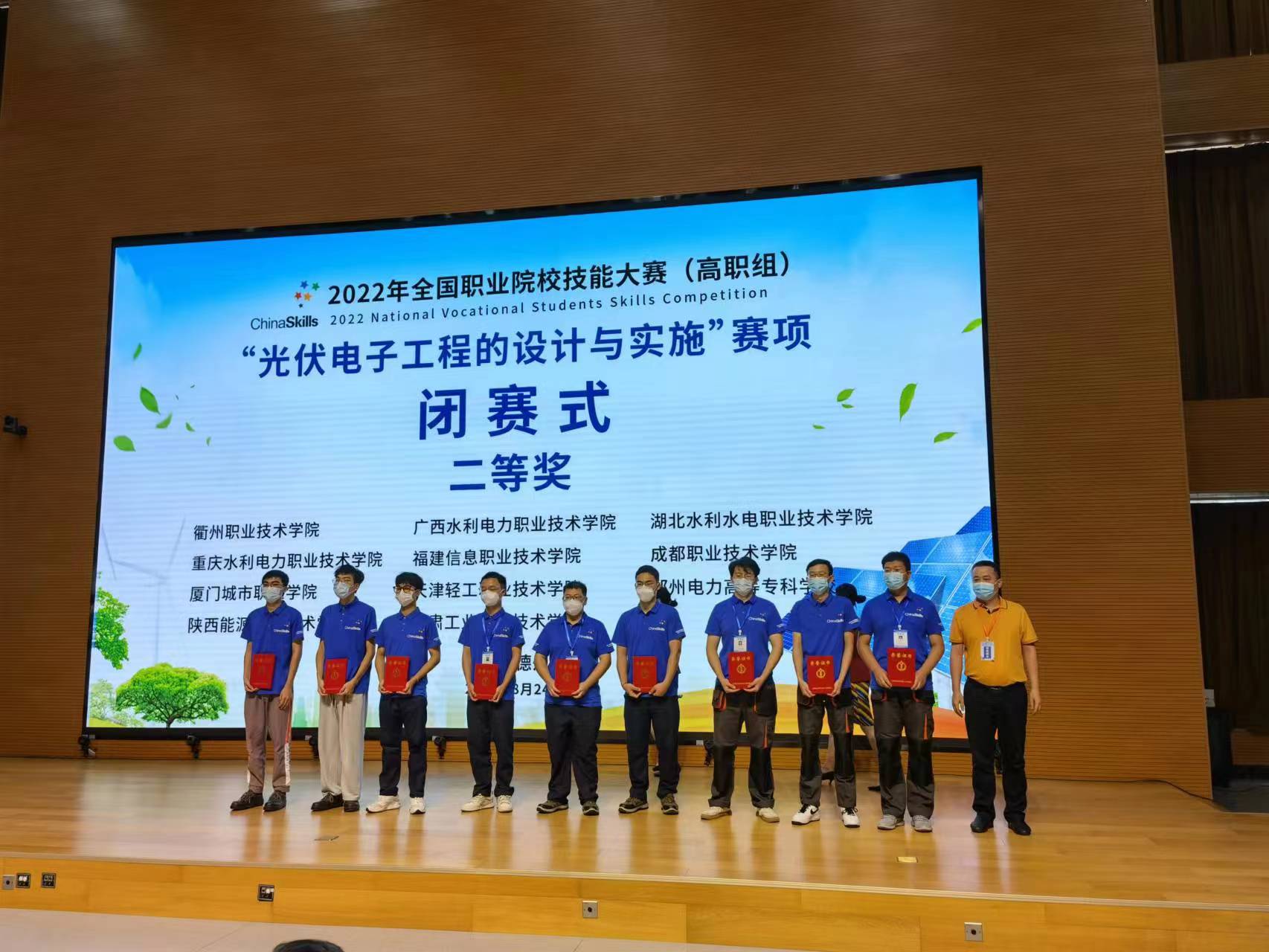 (邓其力 冯伦)8月21日至8月24日,2022年全国职业院校技能大赛(高职组)“光伏电子工程的设计与实施”赛项在山东德州举行。我院由朱光波、冯伦、邓其力老师指导,张凡运、李世杰、李运丰同学组成的参赛团队在该赛项中挺进全国前十,荣获二等奖的好成绩。
