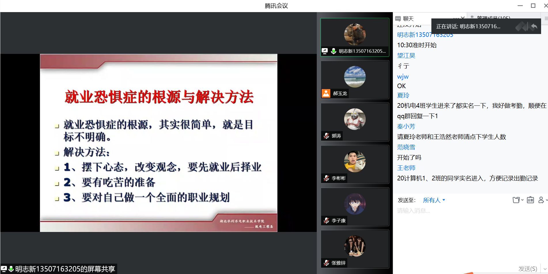 (郝玉龙)8月29日上午,机电工程系采用腾讯会议召开线上跟岗实习动员大会,机电工程系领导班子、跟岗实习带队老师、相关辅导员及2020级计算机应用技术专业1-2班、机电一体化技术4班全体同学线上参会。