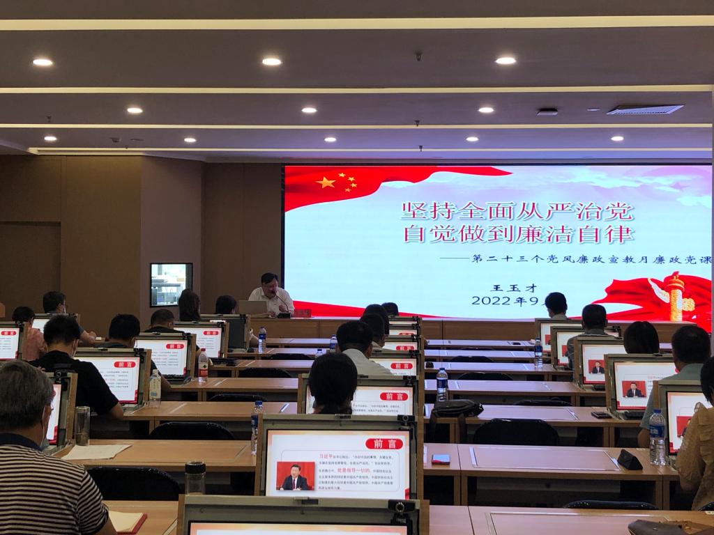 党委书记、院长王玉才以“坚持全面从严治党自觉做到廉政自律”为主题,讲授廉政党课。王玉才从“从严治党是中国共产党的优良传统和重要法宝”、“党的十八大以来全面从严治党的生动实践”、“自觉做到廉洁自律”等三个方面,系统梳理从严治党的历史和实践,要求党员干部自觉筑牢思想防线,强化党章党规党纪学习,涵养新时代共产党人的良好家风。