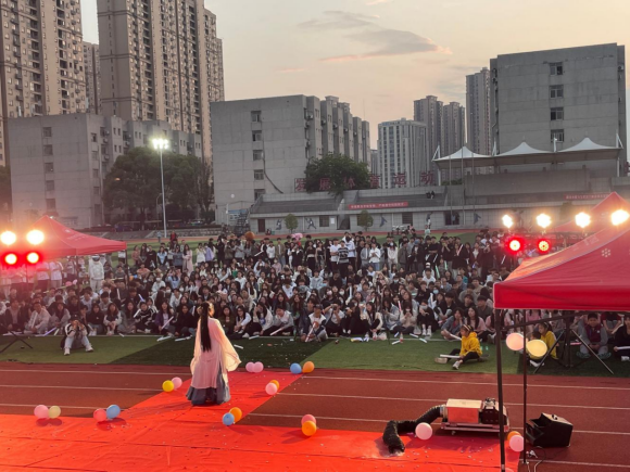 2023年4月27日,商贸管理系在南湖校区成功举办了“青春嘉年华”晚会。晚会开场由舞蹈协会带来了燃爆全场的舞蹈表演,每一个舞步都踏出了动感的节奏,舞出青春韵律,场下响起了阵阵欢呼声。
