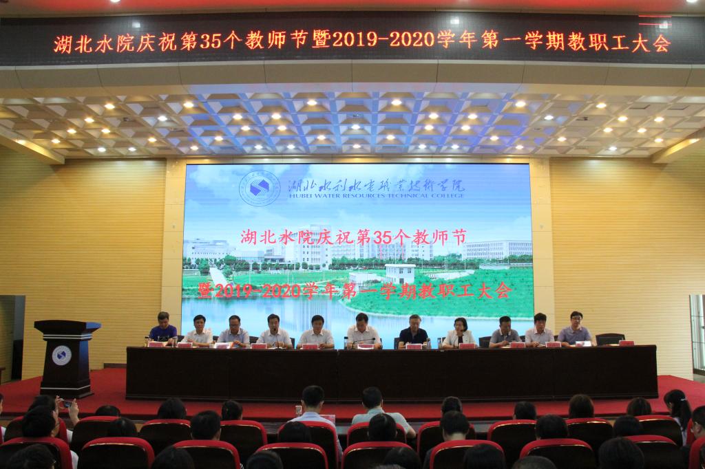 (范黎来)9月10日,学院在汤逊湖校区报告厅召开全体教职工大会,隆重庆祝第35个教师节,安排部署新学期工作。省水利厅党组成员、副厅长焦泰文率厅人事处、经济办有关负责同志到会指导。学院领导班子成员、全体教职工参加了大会。