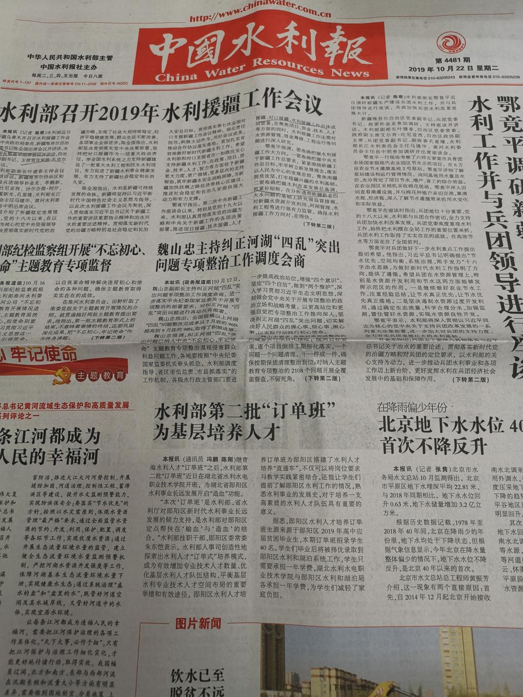 (庹琳)10月22日,《中国水利报》头版报道我院郧阳区水利人才订单班。